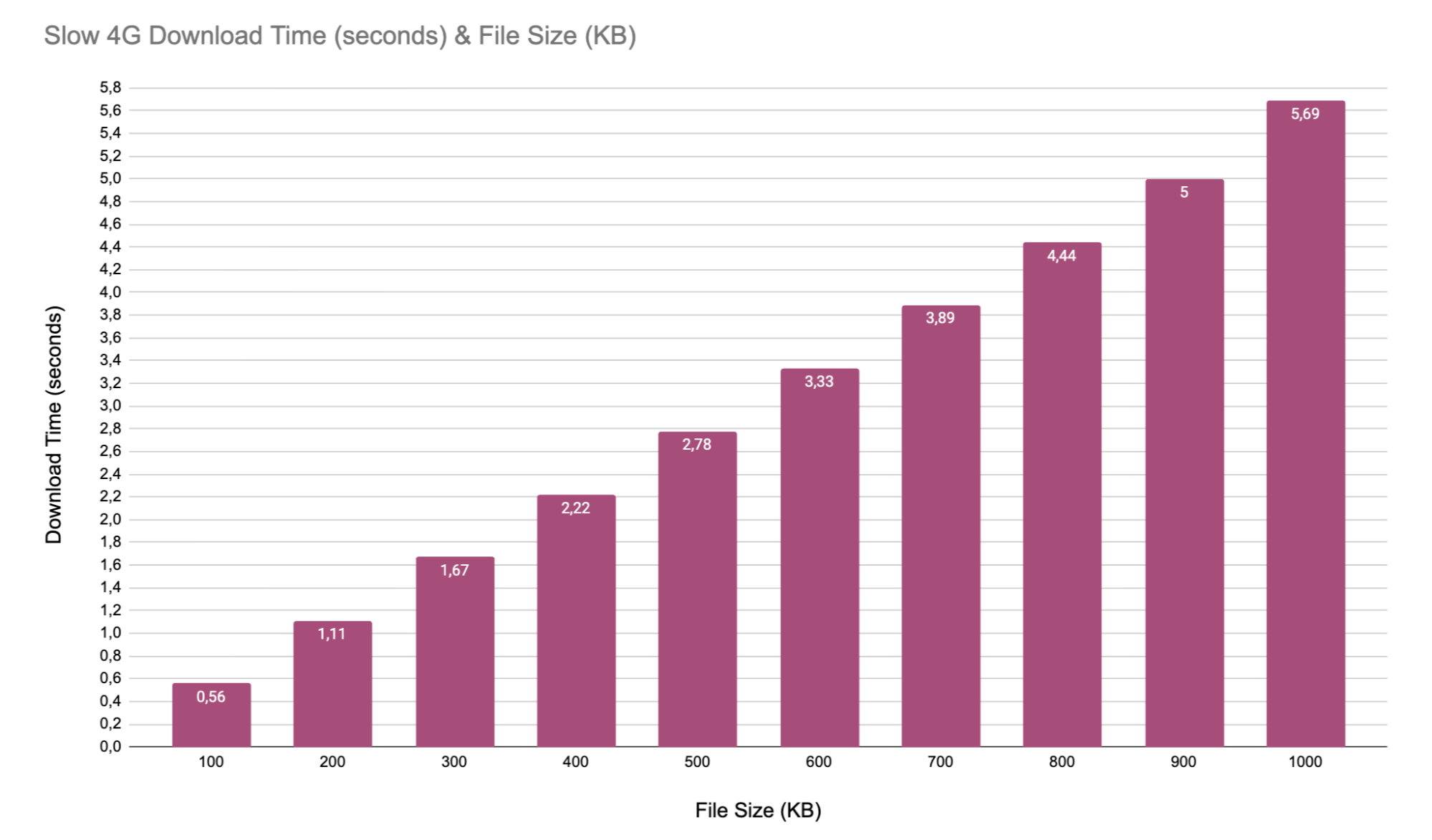 The following table gives you an idea about download times for images from 100KB to 1MB on a “Slow 4G” network.