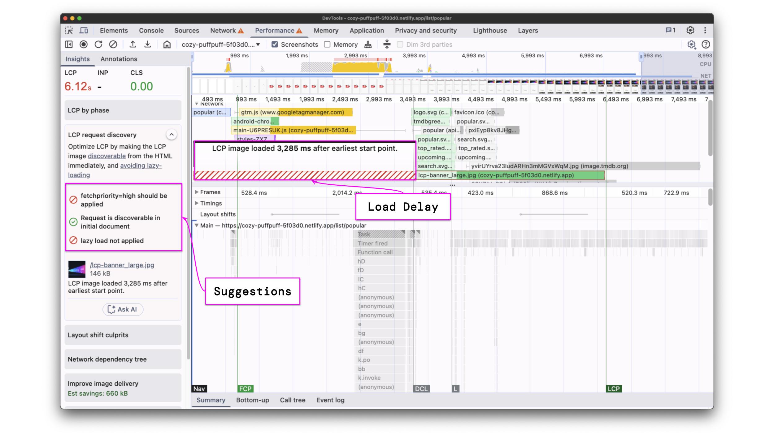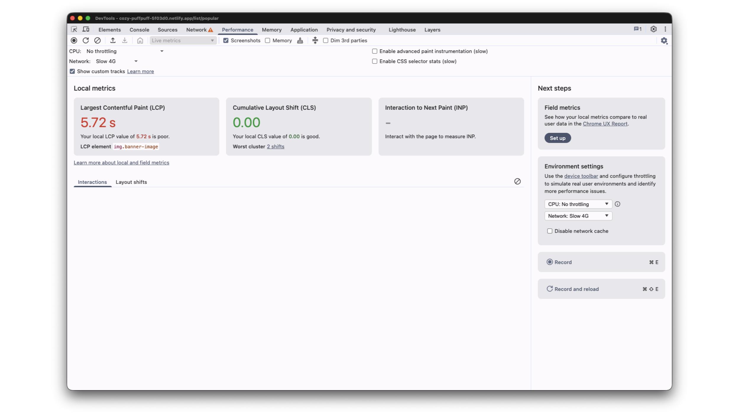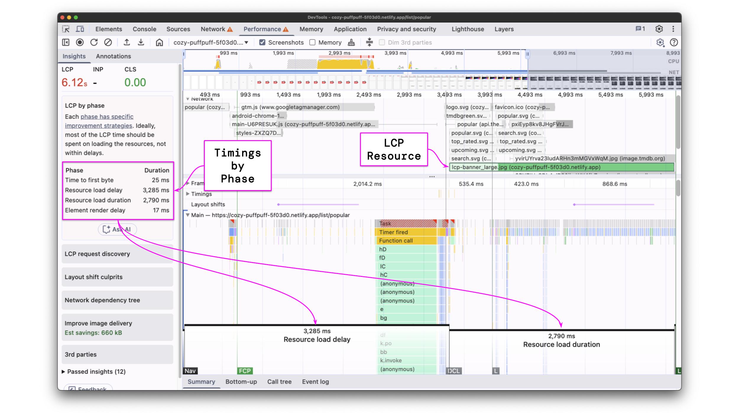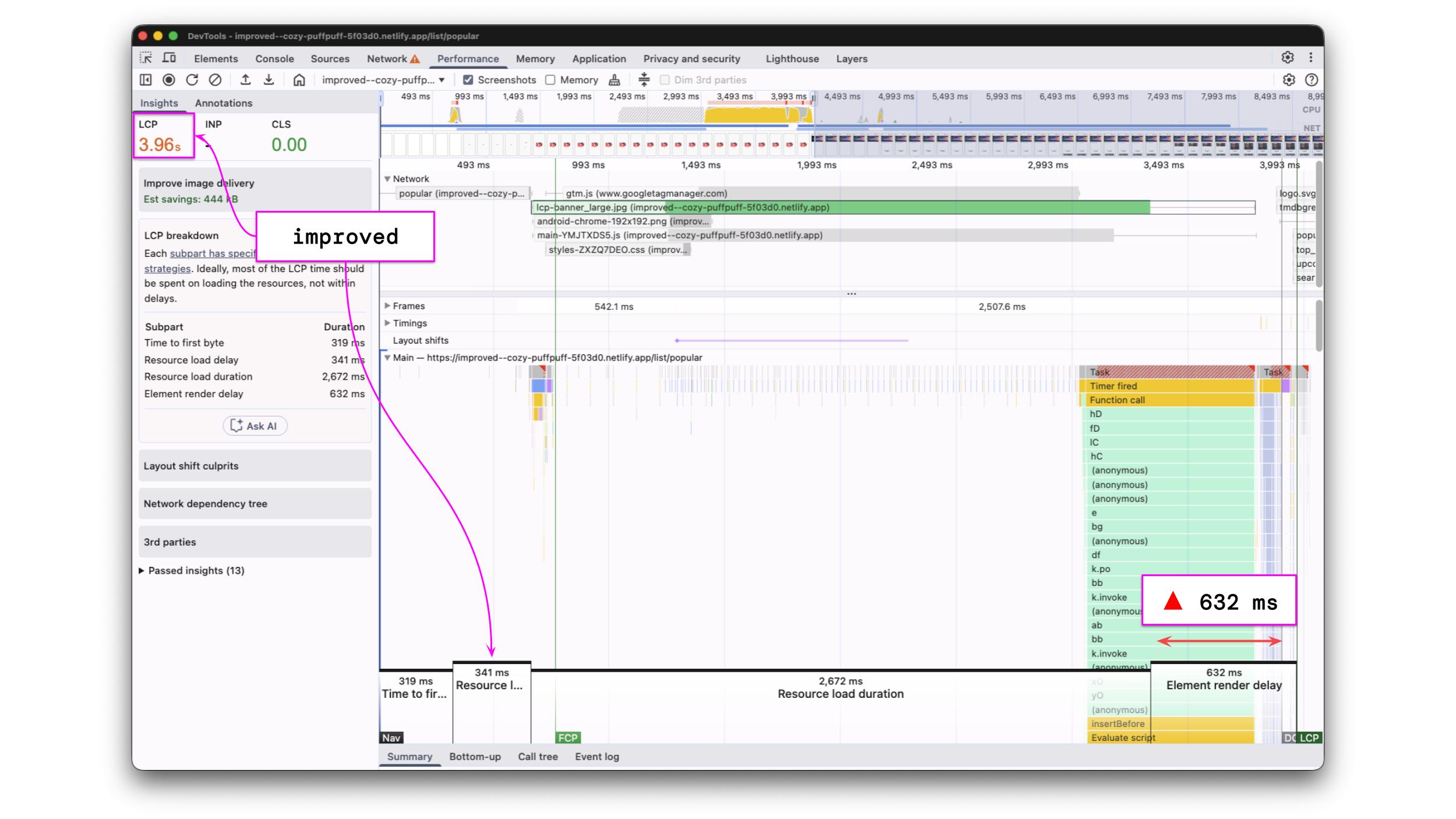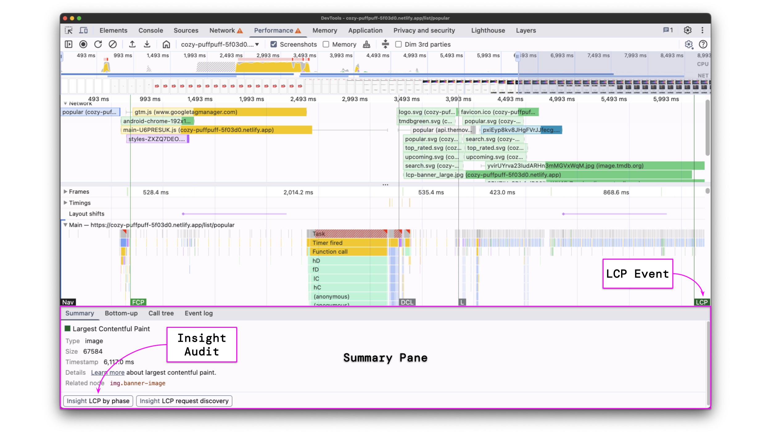 However, if you want to understand how your LCP is scored and find optimization opportunities, you should run a performance recording and analyze the profile.