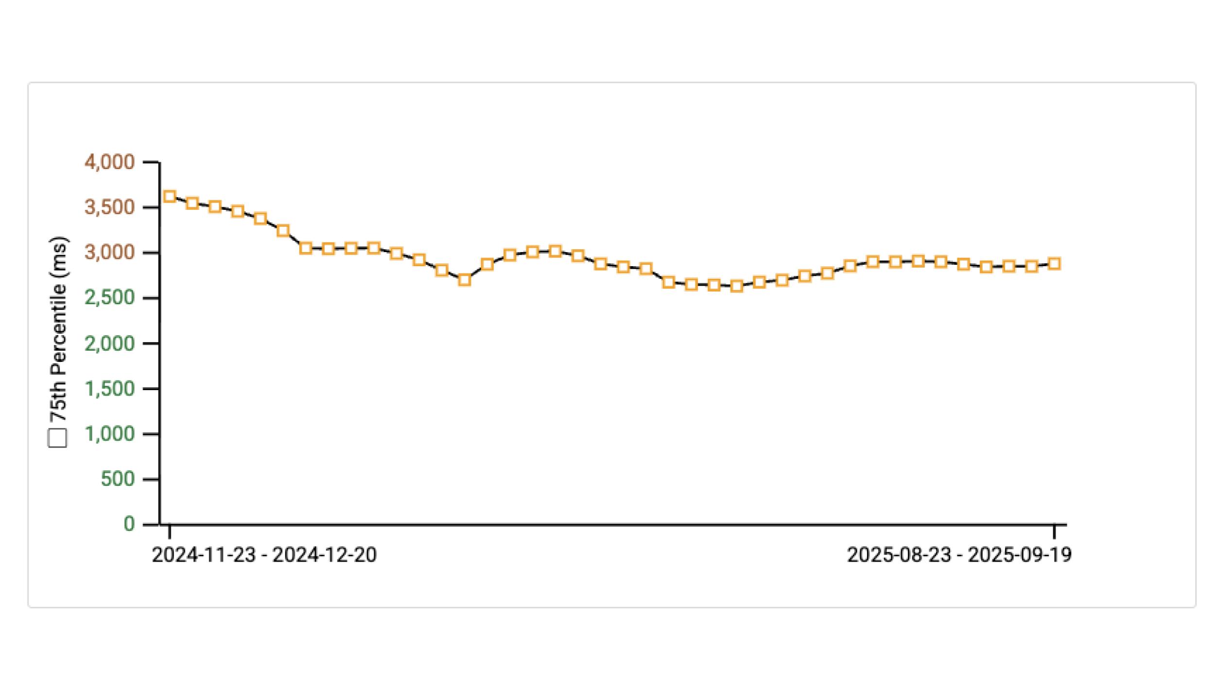 The Loading Performance report lets you observe the 75th percentile LCP values of your users over time with a configurable time span. This also gives you a nice overview of trends and lets you validate the improvements you have landed.